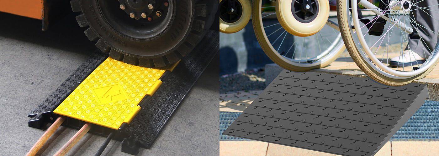 Sturdy cable protector that handles trucks and forklifts with ease. Ideal for our loading dock area. Good grip surface and easy to clean.