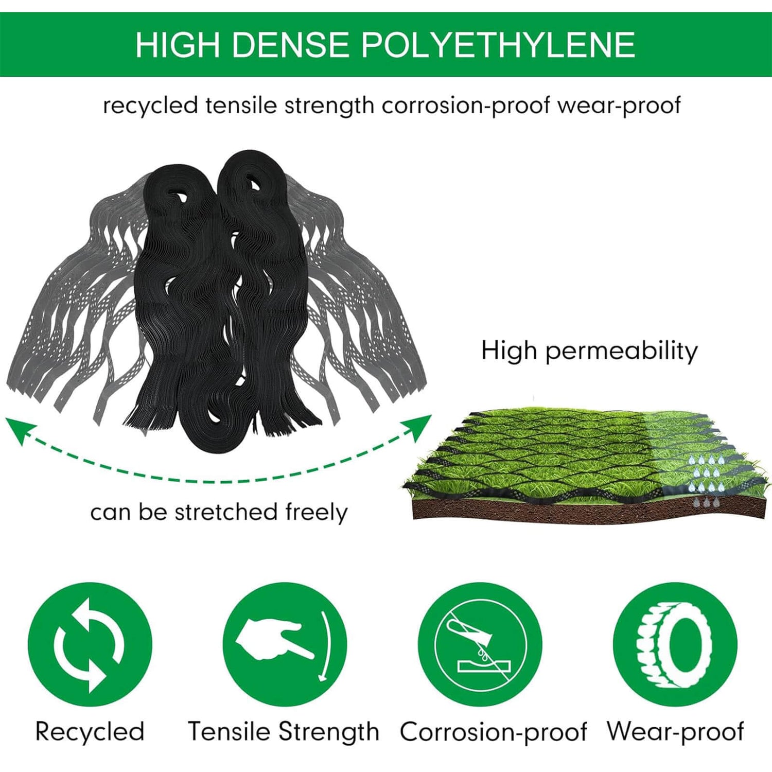 - ECO-FRIENDLY DURABLE HDPE GEOCELL MATERIAL: Crafted from high-density polyethylene (HDPE) that is resistant to photooxidation, wear, and corrosion. This eco-friendly material ensures long-lasting performance in any climate, compatible with grass, gravel, concrete, sand, and various soil types, making it the perfect ground grid for gravel stabilizer applications.