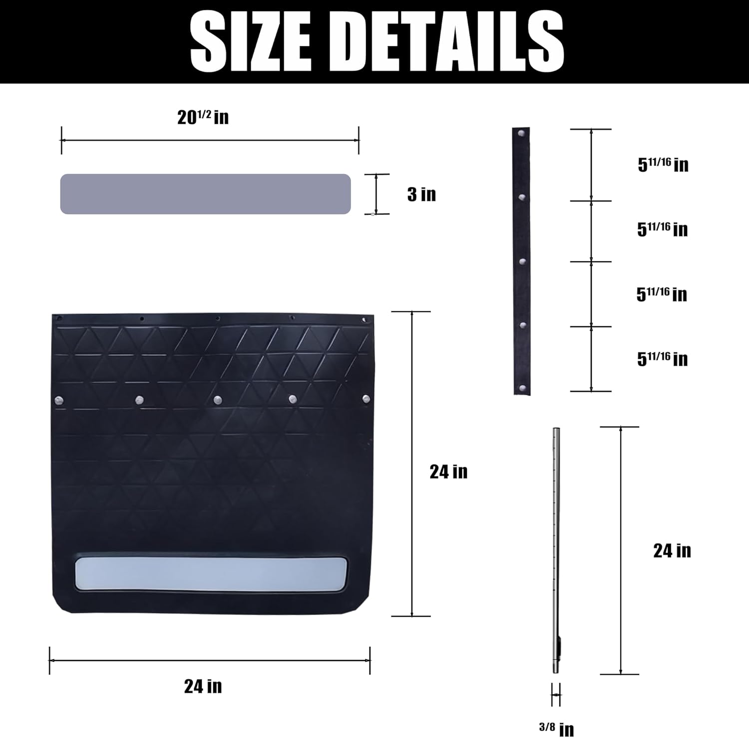 - Ready-to-Use 2-Pack Set:This value pack includes two identical mud flaps, providing you with everything needed to protect both rear wheels of your vehicle right out of the box
