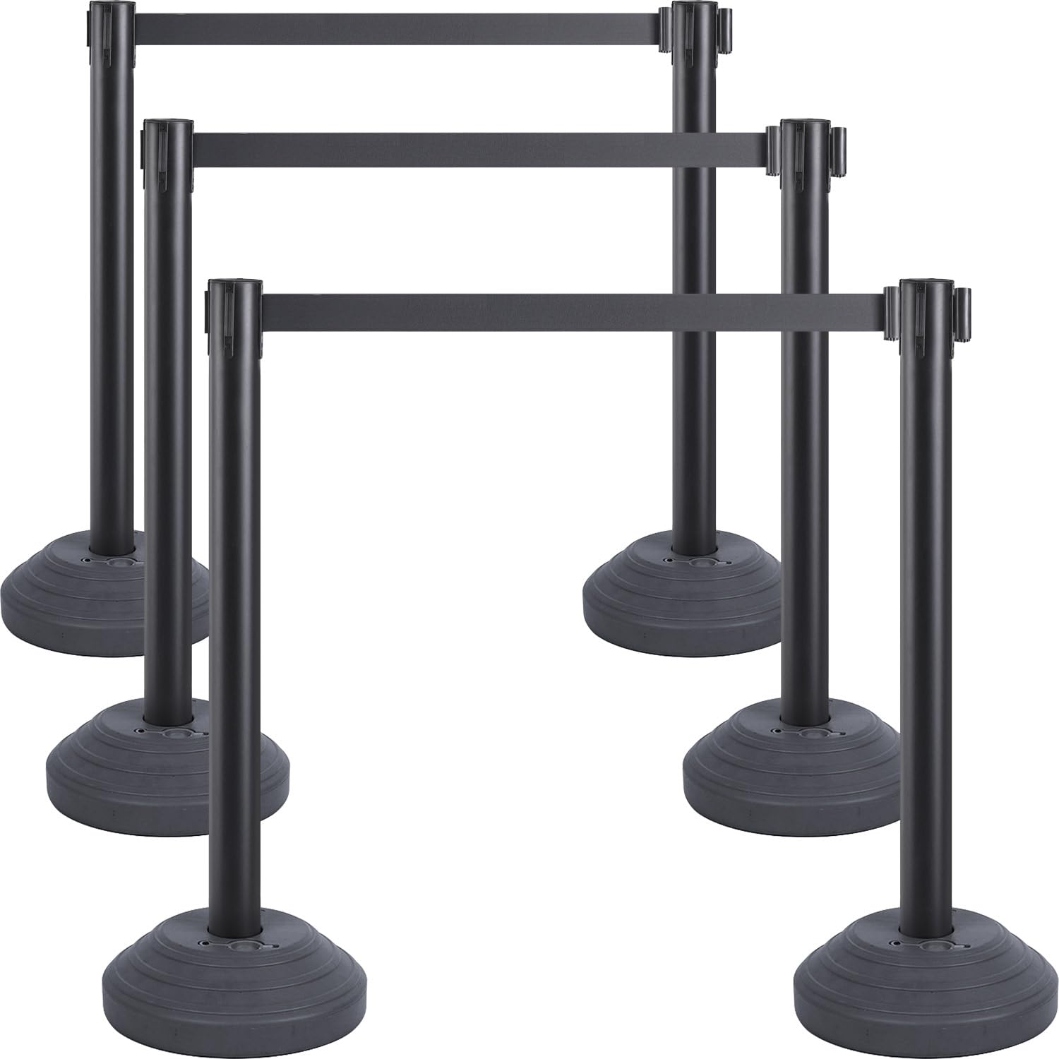 Plastic Retractable Stanchion with 10 ft Black Belt - Heavy Rubber Base 6PCS / Black is backordered and will ship as soon as it is back in stock.