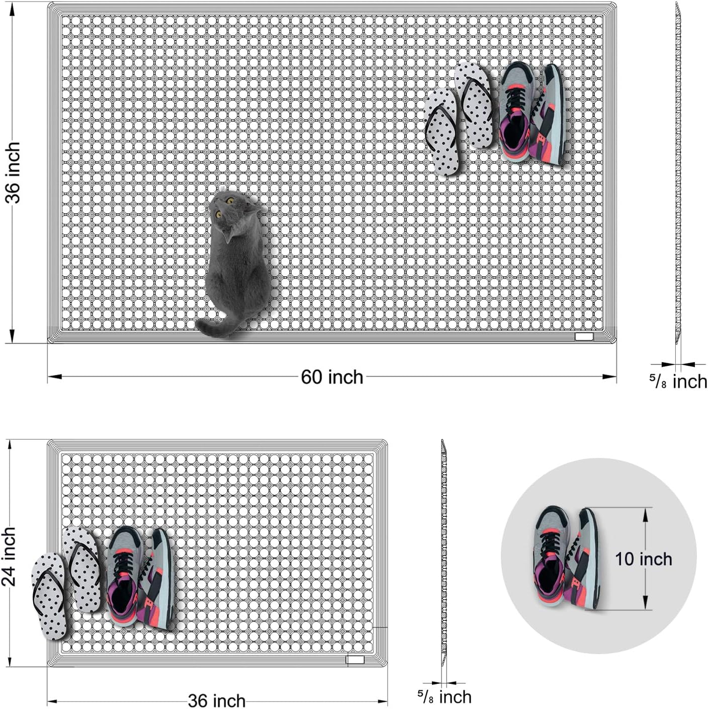 - Low Maintenance Cost --- Apart from regular simple cleaning, you don't need any additional maintenance. Available in 2 sizes: 5 'x 3' Feet and 3 'x 2' Feet heavy-duty rubber mat.