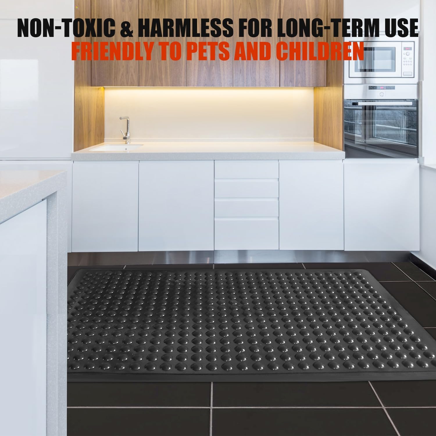- Anti-Fatigue Floor Mats with Holes --- Suitable for all types of floors, whether tiled or wooden, and effectively avoiding direct contact with damp surfaces. Built with large hexagonal drainage holes, reduce the amount of slippery liquids and oils left on the floor, help to prevent dangerous accidents.