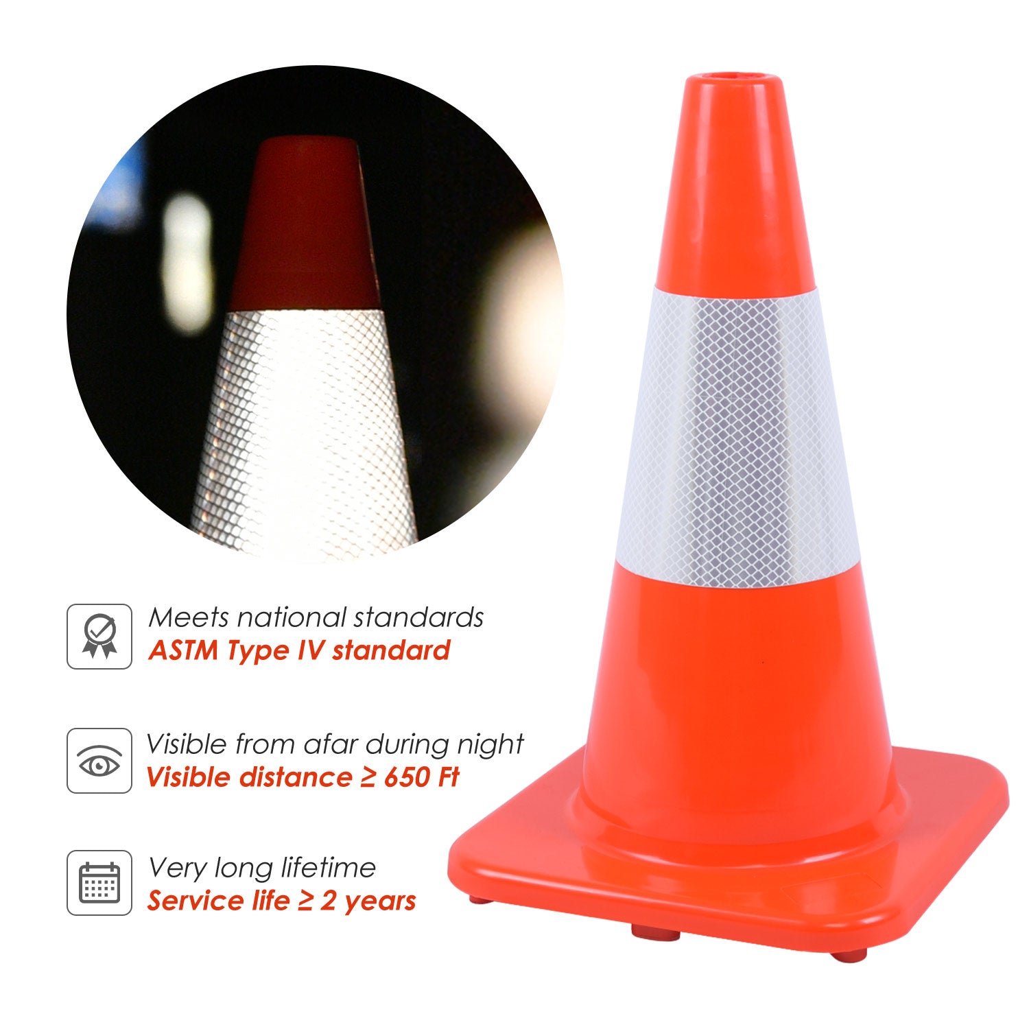 18" Solid Orange Traffic Cone with 6" ASTM Type IV Reflective Collar