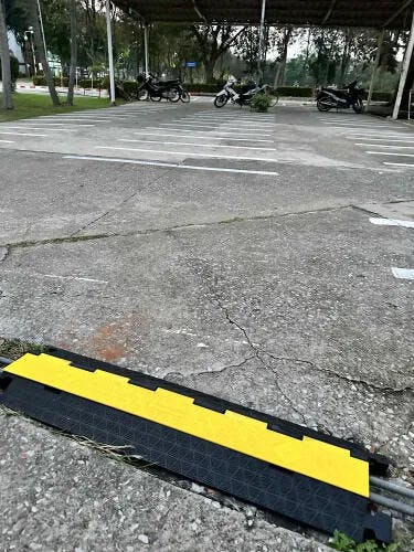 This new series Rubber Cable Protector are design for Sound & Light Industry which only has Light Capacity Traffic. The Black Base is made of Recycle Tire Rubber and Yellow Lid is made of PVC.