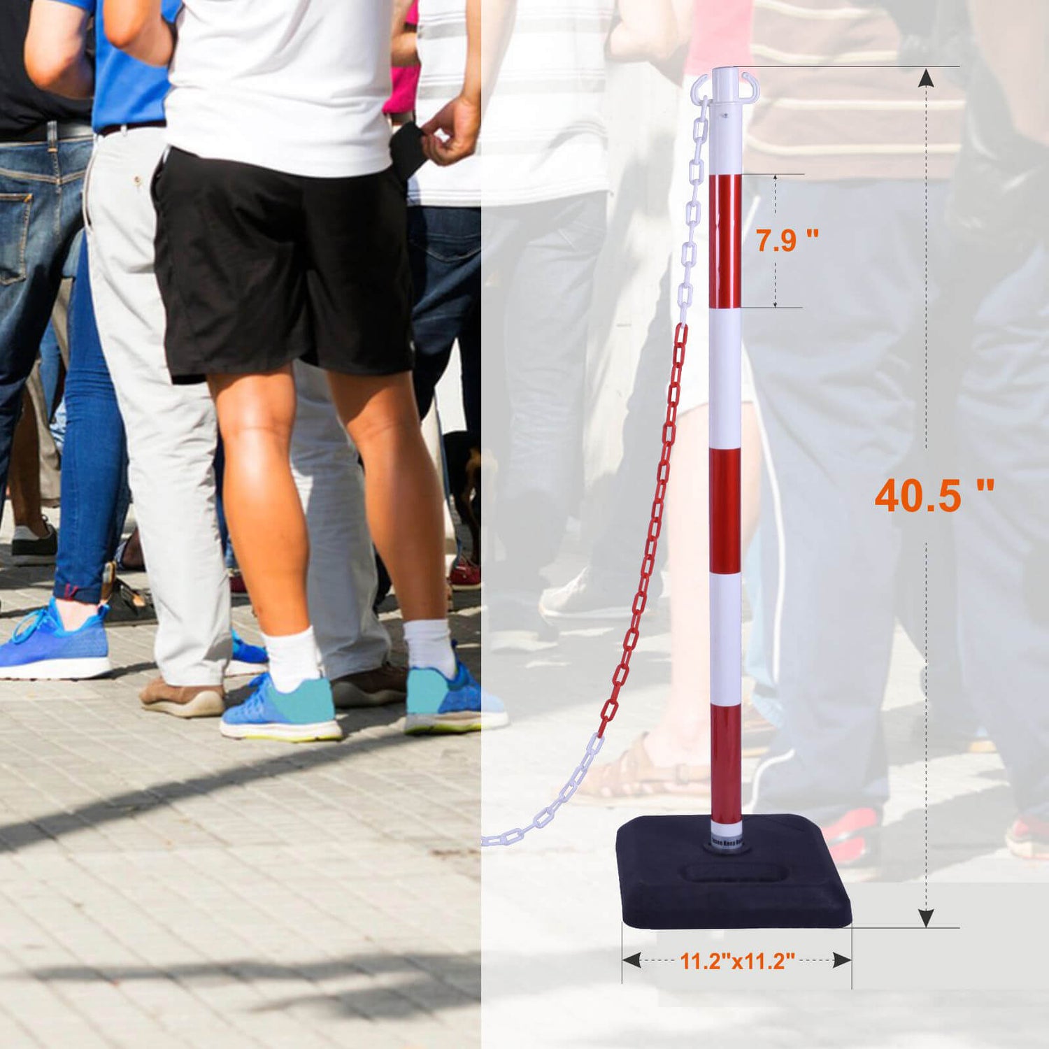 40" Delineator Post Cone with Rubber Base, 20ft Chains Traffic Barrier for Parking Lot,Road,Construction