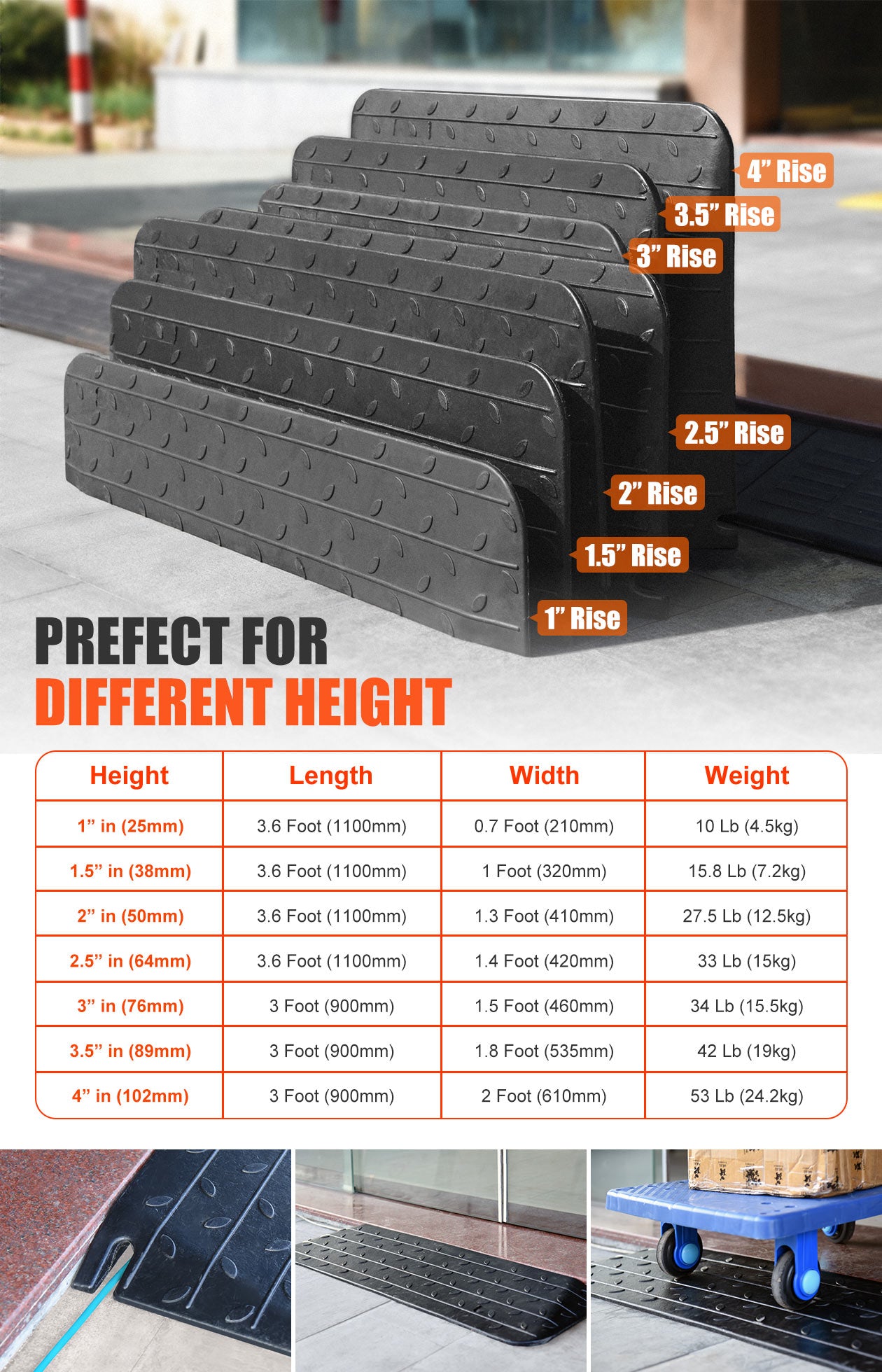 Rubber Threshold Ramp Height 1 to 4Inch